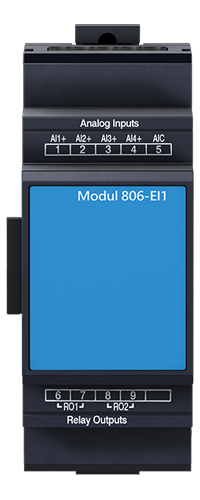 806-EI1 MODULEThe analog input module has inputs and outputs for monitoring and evaluating external signals and sensors.